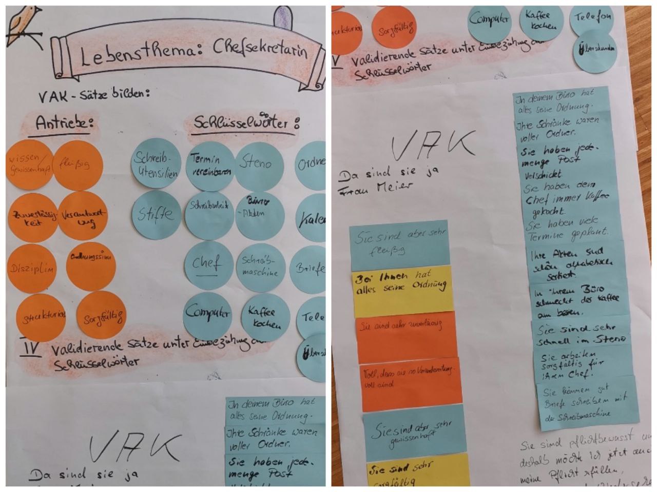 Zuvor hatte ich anhand der IVA®-Pyramide den Punkt IV – biografische Echos erklärt. Anschließend tauchten wir gemeinsam in das Lebensthema „Chefsekretärin“ ein. Wir suchten Antriebe und Schlüsselwörter und formulierten validierende Lebensthemen-Sätze, um das Prinzip praktisch zu erfahren. So wurde deutlich, wie gezielt und zugleich feinfühlig die Integrative Validation® Menschen mit demenziellen Beeinträchtigungen unterstützt – im Sinne des Grundsatzes: