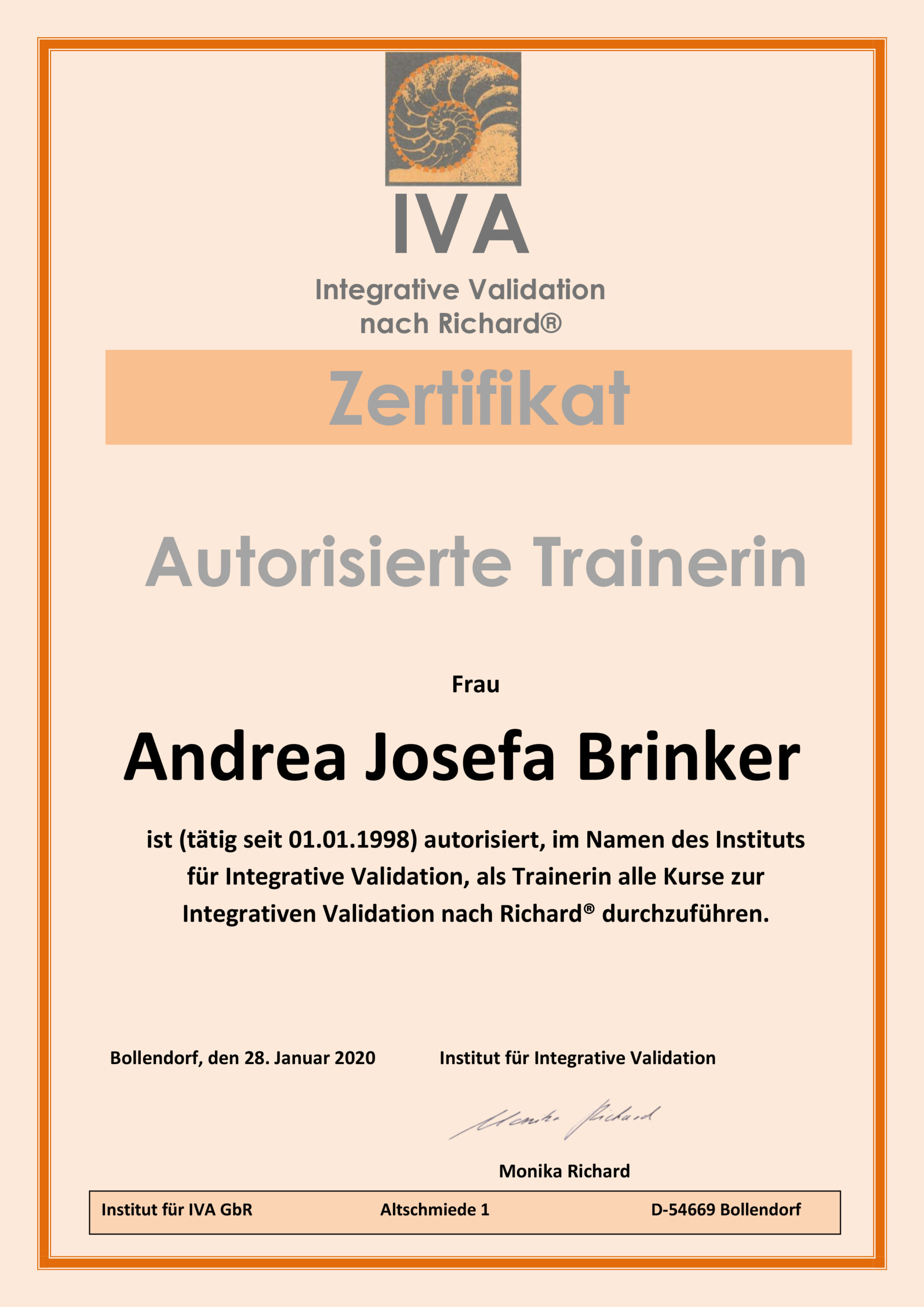 - Grundkurs Integrative Validation nach Richard® – Nachweis Grundkurszertifikat